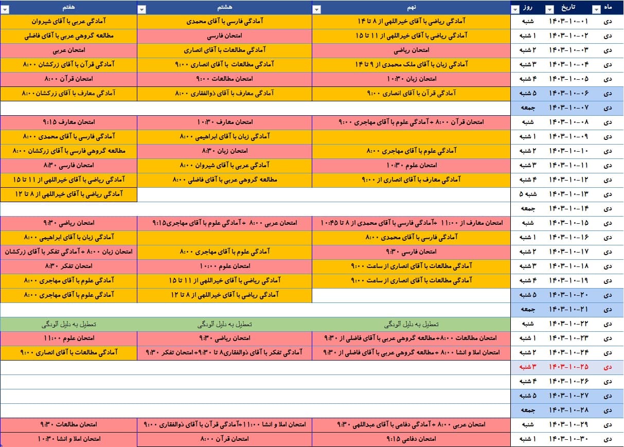 🔹 می‌توانید با ملاحظه نمونه برنامه امتحانی زیر