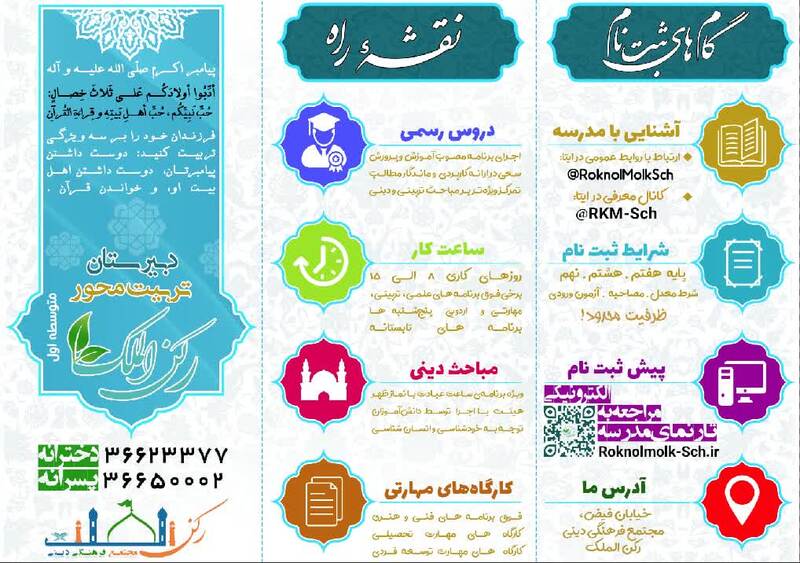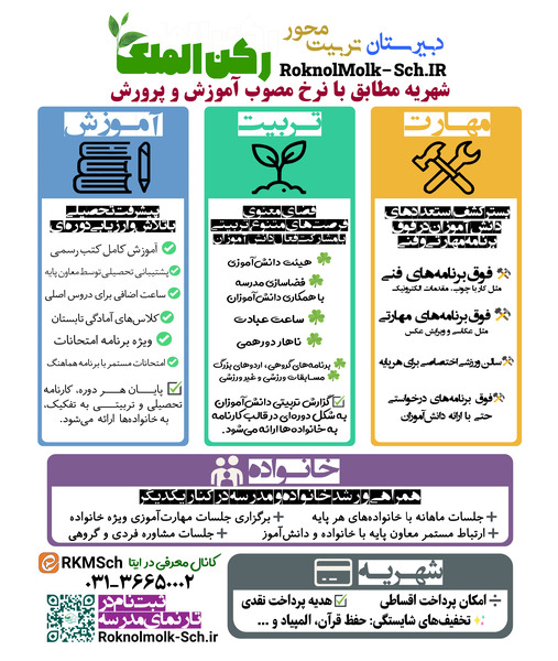 خوشحالیم از اینکه مدارس تربیت محور رکن الملک(پسرانه) و مشکات(دخترانه) را برای ثبتنام فرزندان عزیزمان برگزیدید.